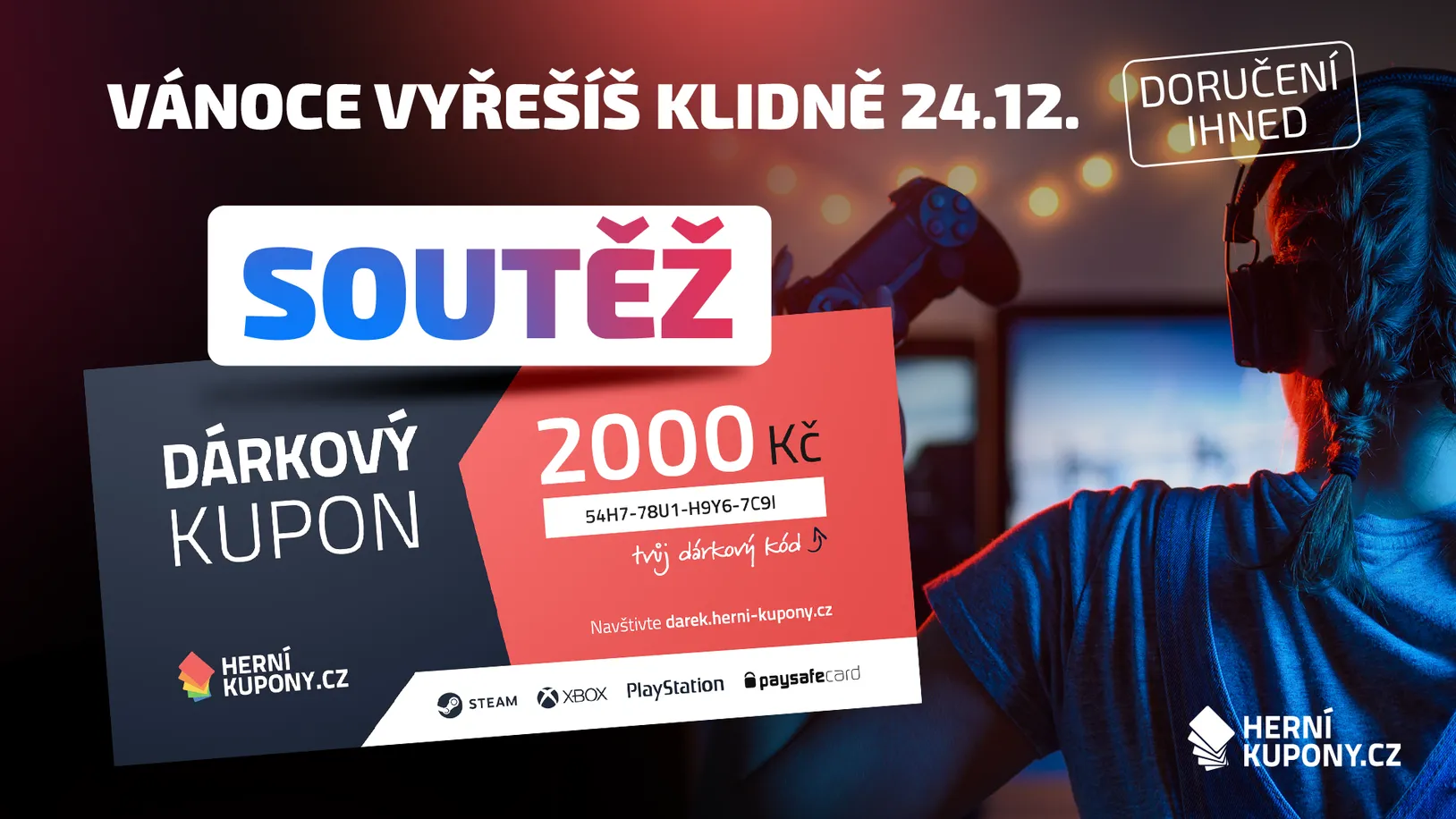 - 1x dárkový kupon Herní-kupony.cz v hodnotě 2000 Kč